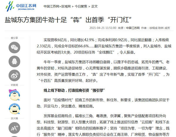 鹽城東方集團(tuán)牛勁十足“犇”出首季“開門紅”