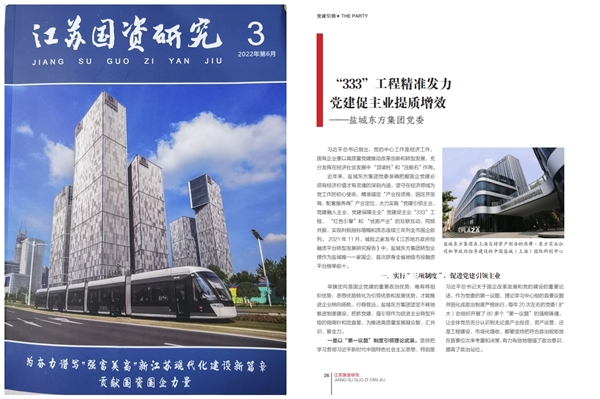《江蘇國資研究》聚焦鹽城東方集團(tuán)黨委:“333”工程精準(zhǔn)發(fā)力 黨建促主業(yè)提質(zhì)增效