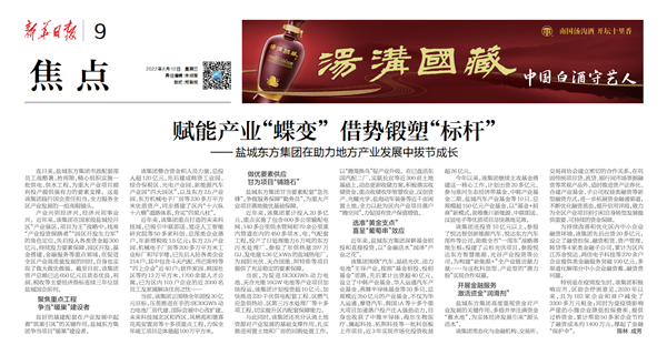 8月10日,《新華日報》第9版“焦點”版面發(fā)表《賦能產(chǎn)業(yè)“蝶變” 借勢鍛塑“標(biāo)桿”》文章,聚焦鹽城東方集團(tuán)積極踐行國企擔(dān)當(dāng),助力地方產(chǎn)業(yè)發(fā)展的重要舉措。