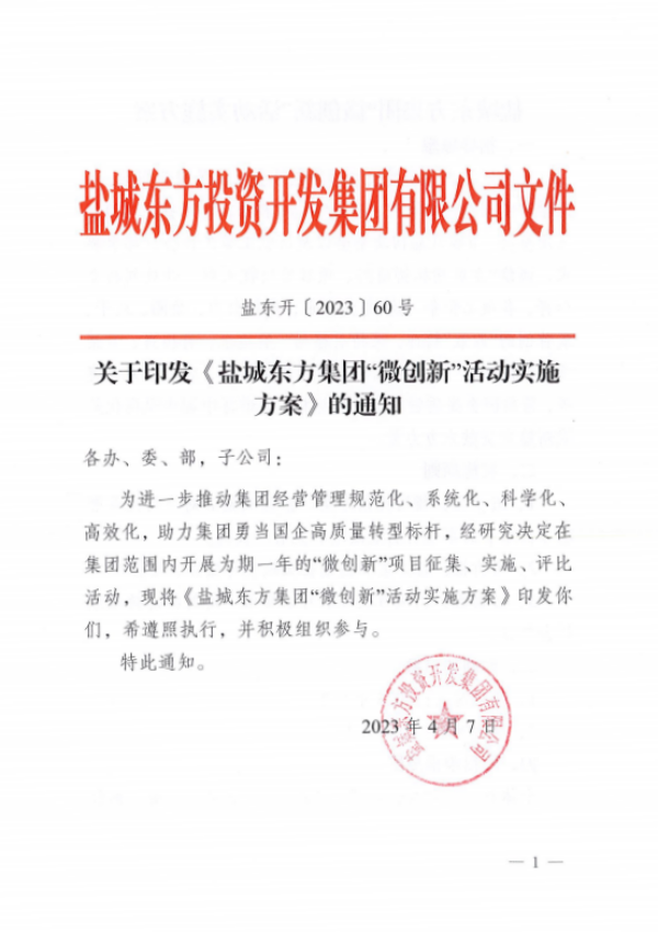 去年初,鹽城東方集團通過開展“微創(chuàng)新”活動,鼓勵集團全員立足本職崗位、堅持問題導向,從小建議、小創(chuàng)造、小革新等“小切口”入手,助力提高運營效率、完善管理流程、提升經(jīng)營業(yè)績。